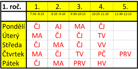 - 7:30 - 8:15 1.hodina