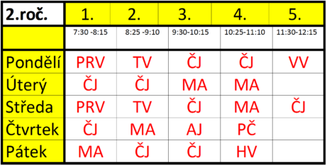 - 8:25 - 9:10 2.hodina